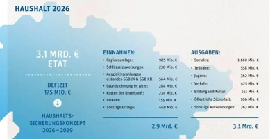 Die Regionsversammlung hat den Haushalt 2026 mit einem Gesamtvolumen von 3,1 Milliarden Euro verabschiedet. Trotz eines Defizits von rund 210 Millionen Euro hält die Region an ihrer Investitionsstrategie fest. Der größte Ausgabenblock bleibt der Sozialbereich mit über 1,1 Milliarden Euro, zusammen mit Jugend- und Teilhabeleistungen fließen rund zwei Drittel des Etats in soziale Aufgaben.